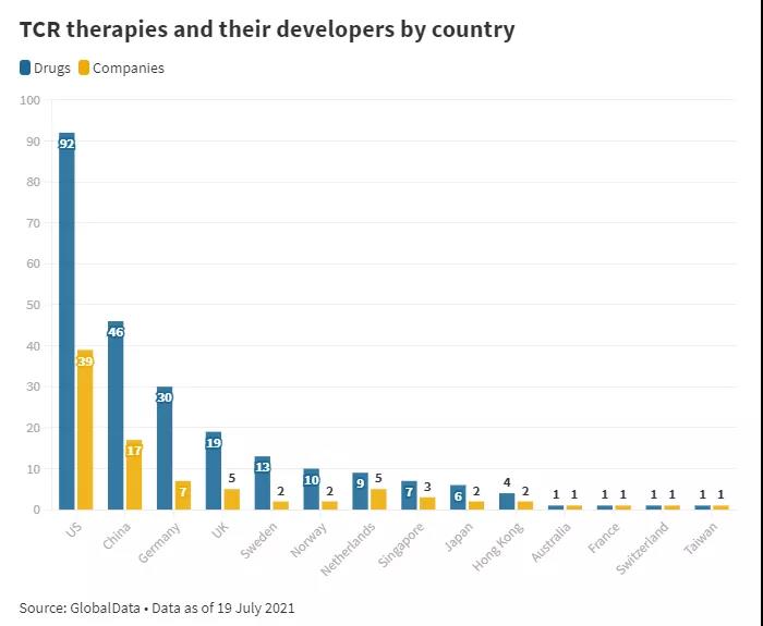德國、英國和荷蘭等歐洲國家擁有一些僅次于美國和中國的全球最大TCR-T開發(fā)團隊。這些國家領先的TCR-T公司包括Immatics、荷蘭公司Gadeta、GSK和英國生物技術(shù)Adaptimmune。此外,在過去幾年中,歐洲以TCR為重點的生物技術(shù)也給出了大力支持。