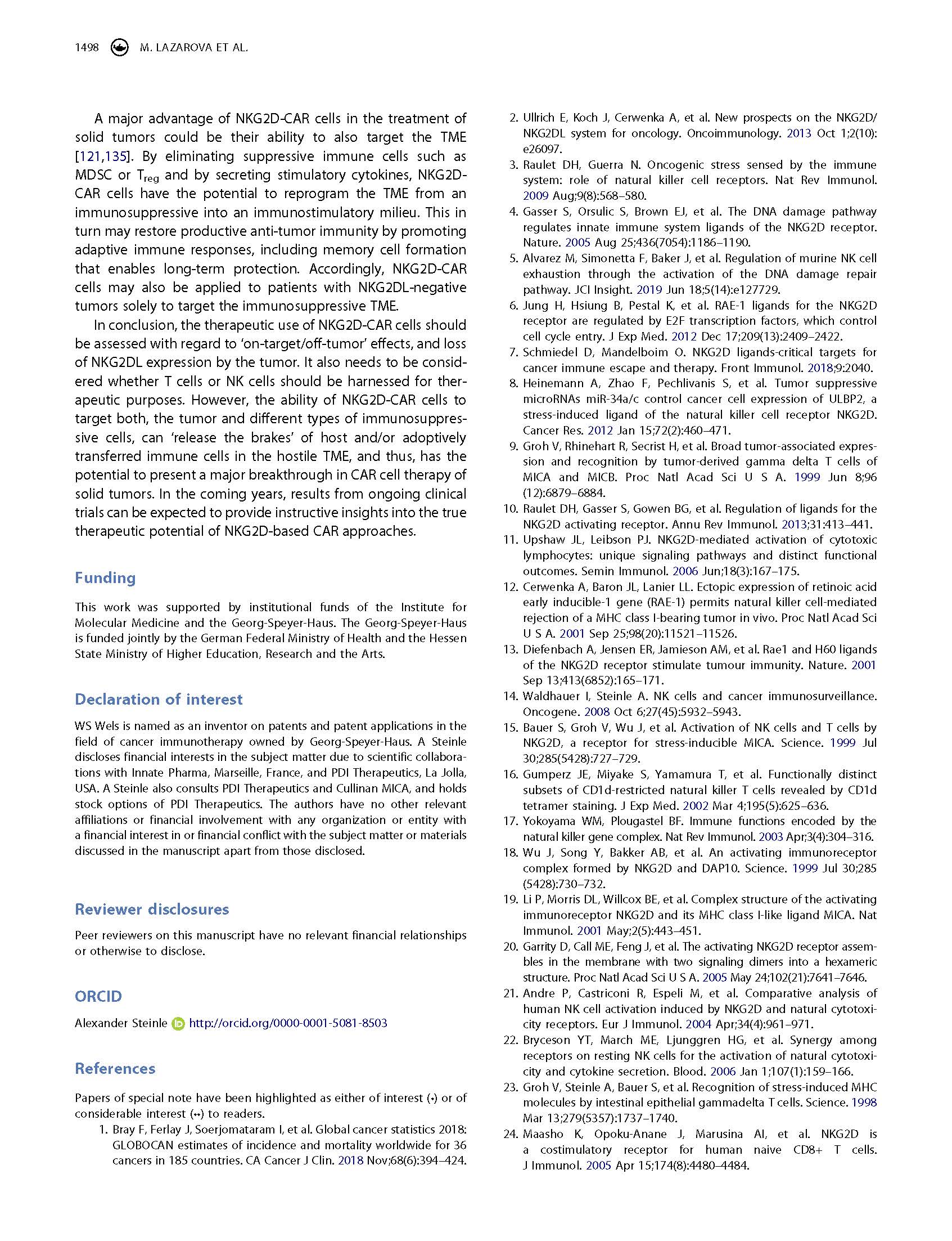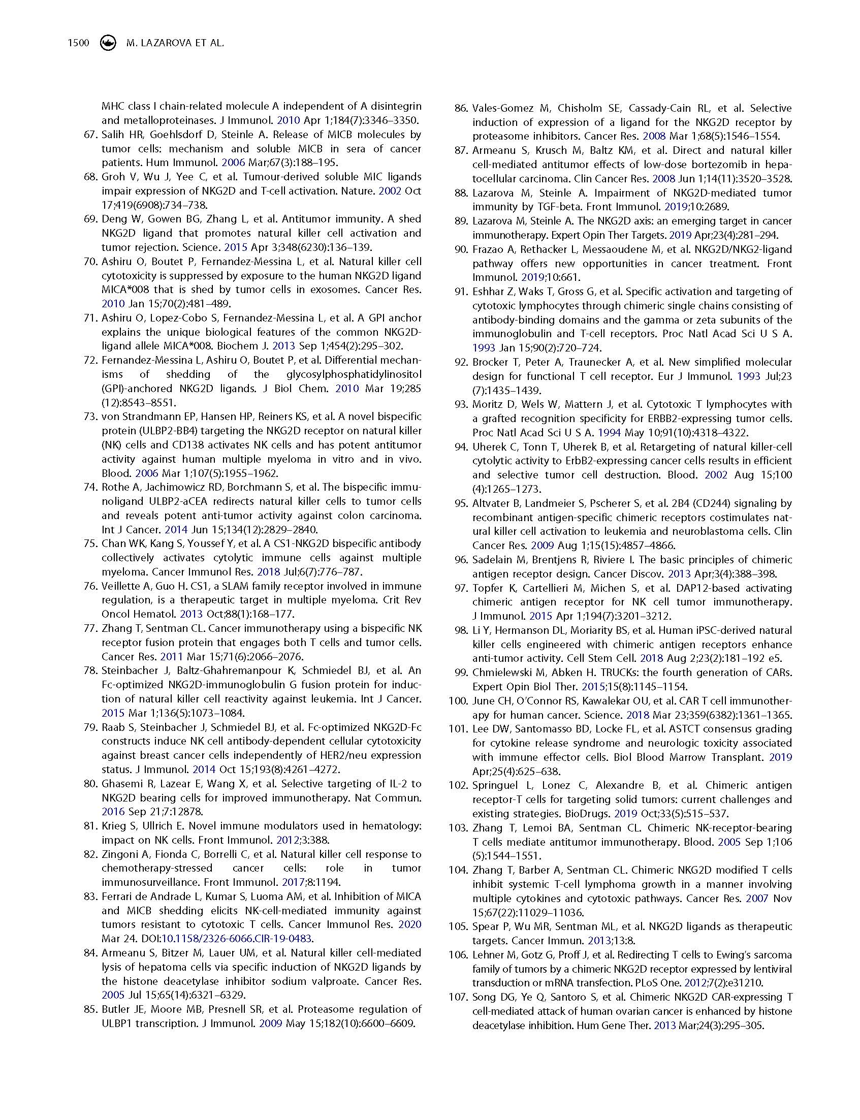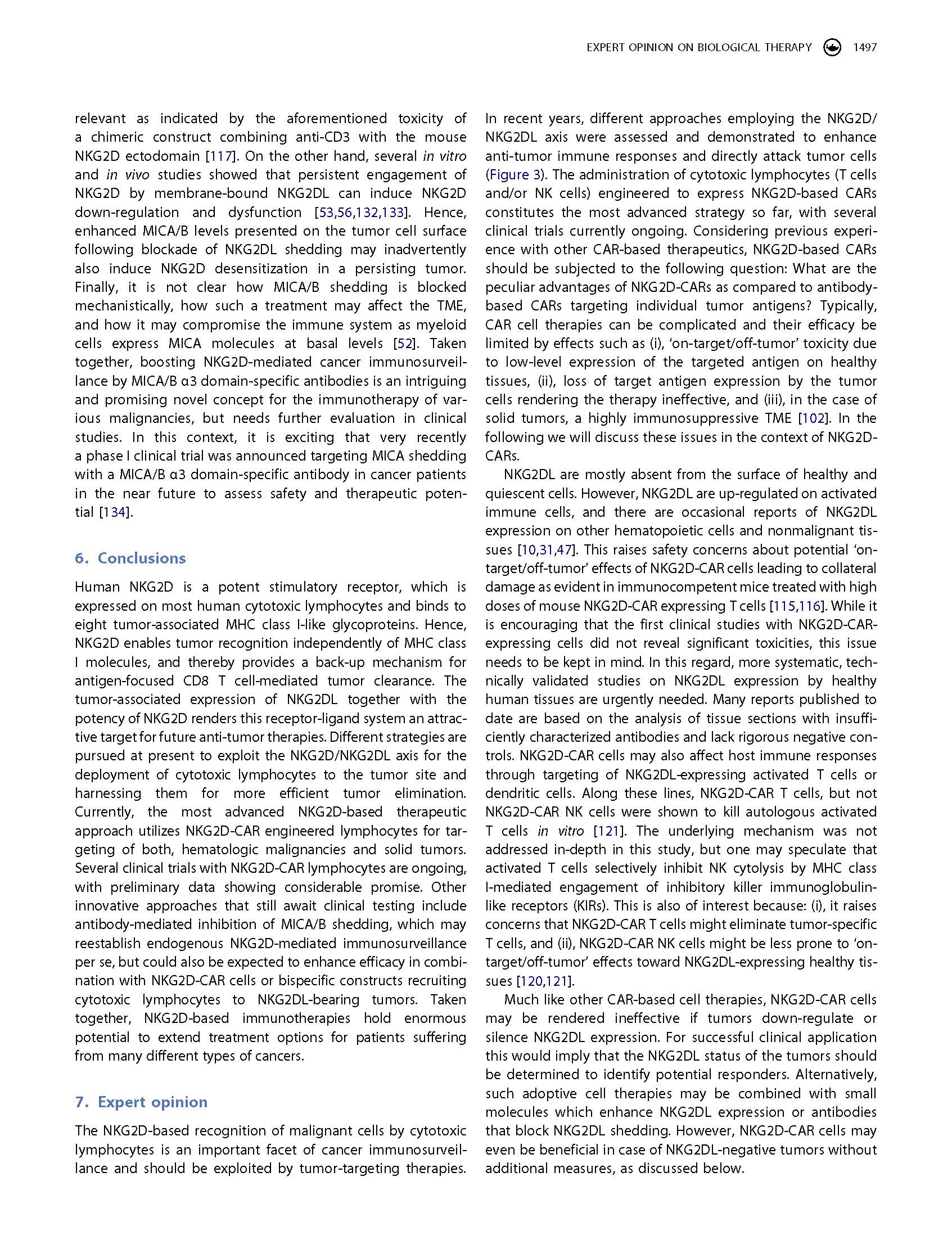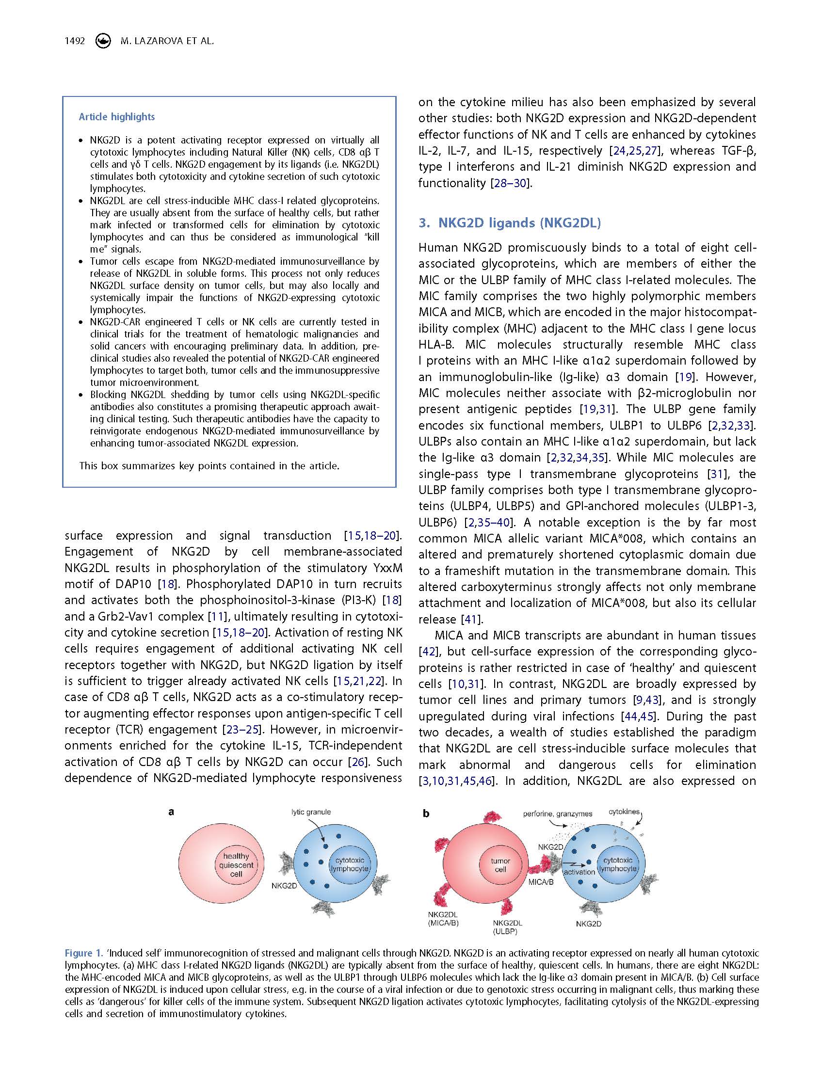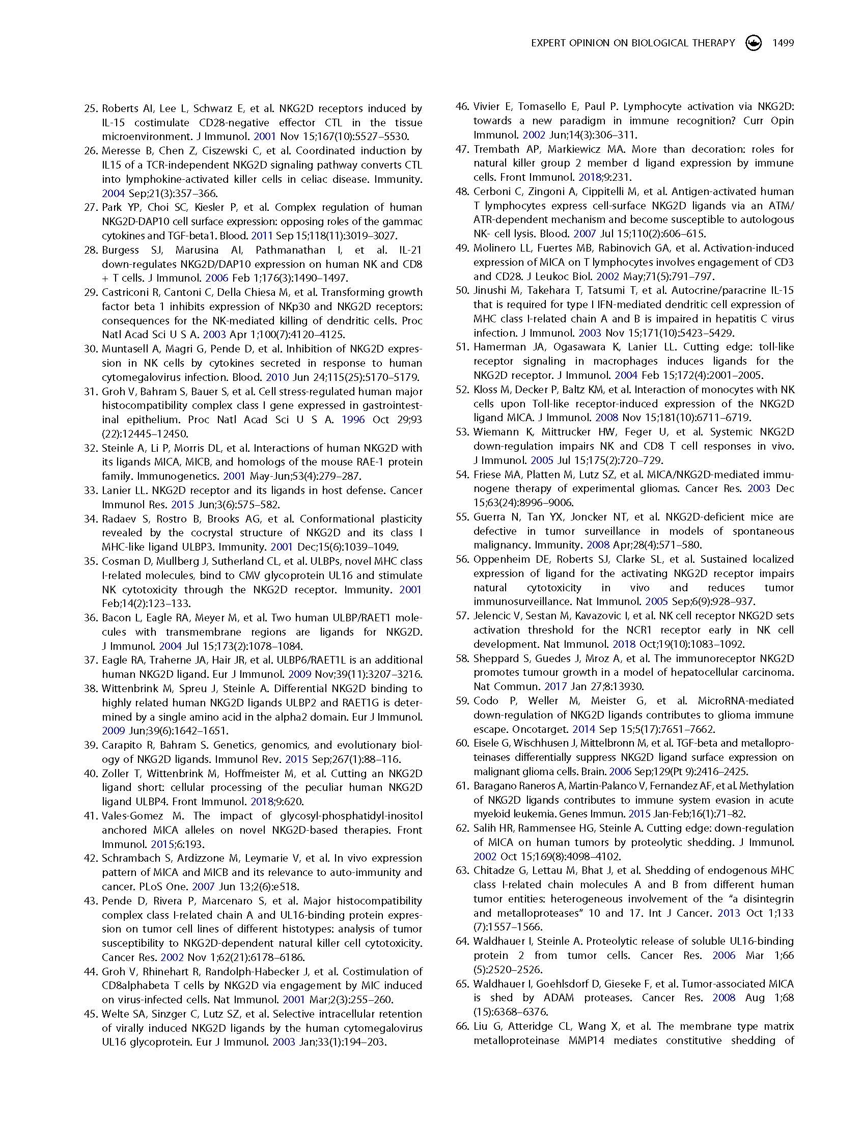 專家意見(jiàn) Arming cytotoxic lymphocytes for cancer immunotherapy by means of the NKG2D/NKG2D ligand system