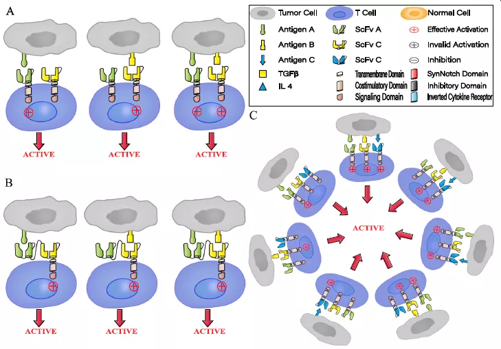 盡管多項(xiàng)研究數(shù)據(jù)顯示,多靶向CAR-T治療多種惡性腫瘤的療效顯示積極,成為預(yù)防抗原逃避的有效手段,但這種類型的CAR-T細(xì)胞可被多個(gè)靶抗原識別并高強(qiáng)度激活T細(xì)胞,容易引起細(xì)胞因子風(fēng)暴,并對低表達(dá)靶抗原的正常細(xì)胞過度殺傷。